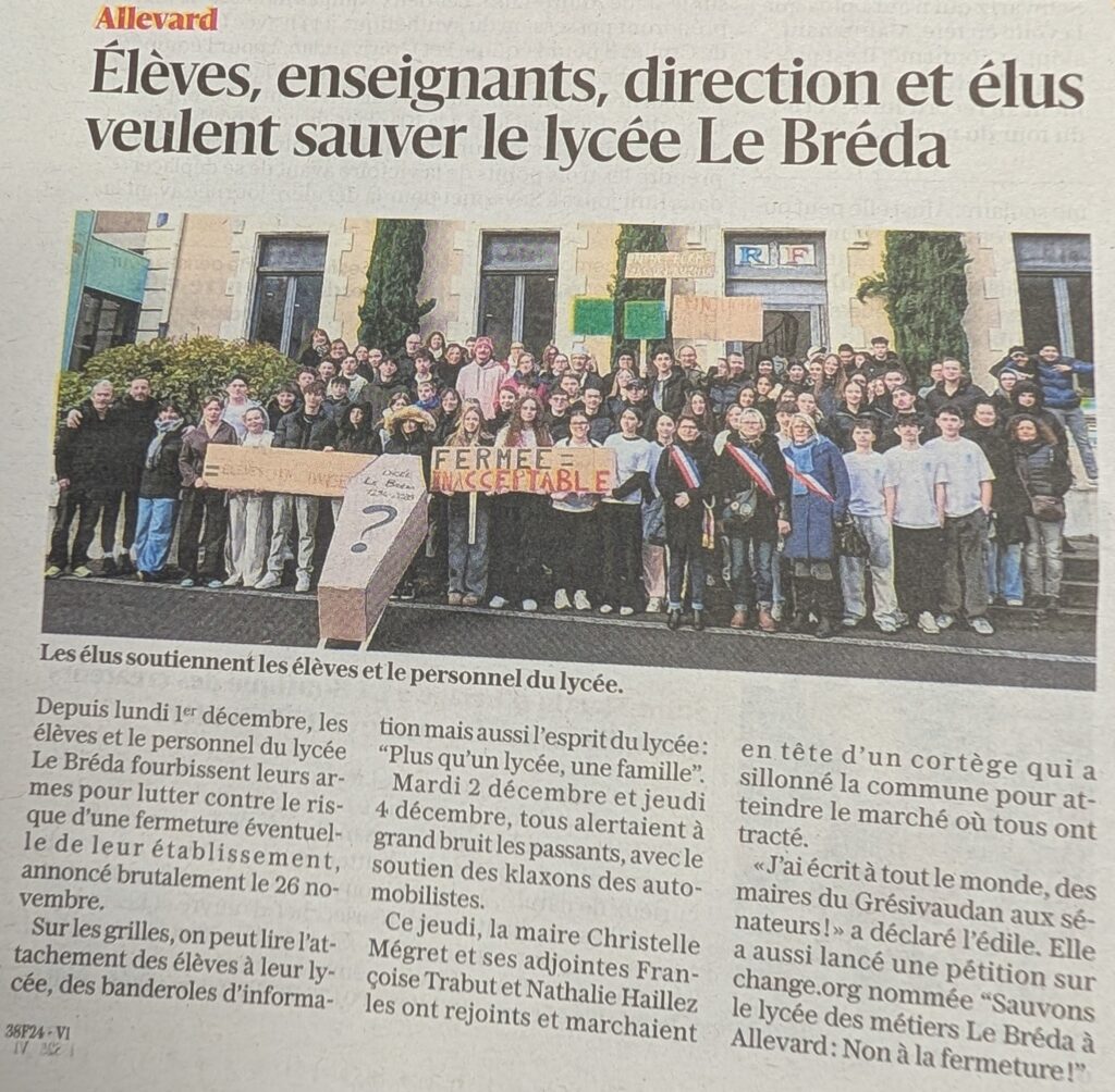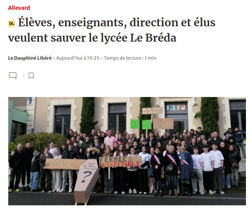 Le Dauphiné Libéré est le premier média à relayer notre situation. Le journal met en lumière nos actions, les inquiétudes des familles, ainsi que les enjeux humains, éducatifs et économiques liés à cette fermeture annoncée.